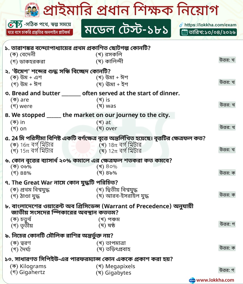 প্রাইমারি সহকারী শিক্ষক নিয়োগসহ সকল প্রতিযোগিতামূলক পরীক্ষার প্রস্তুতির জন্য এখনই যোগ দিন।